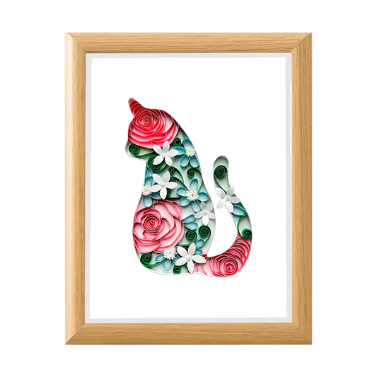 Cat & Flower Silhouette Quilling Art - Paper Art, Gift for Cat Lovers, Handmade Paper Quilling Art 3D Cat